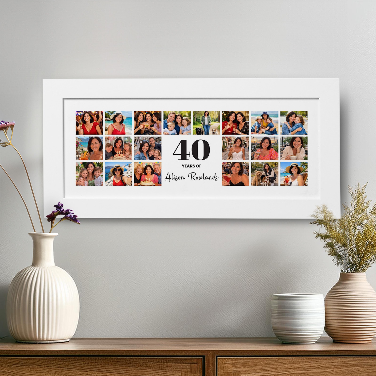 Celebrate a lifetime of memories with our Birthday Gift Ideas Custom Photo Grid Panoramic Picture, a beautifully designed personalised photo collage that transforms meaningful moments into a striking Read more… panoramic display. Thoughtfully created to capture the essence of a person’s journey, this panoramic photo grid features 20 equally sized square images arranged across three perfectly aligned rows, forming a seamless visual timeline that tells a unique life story. Whether you are marking a milestone birthday such as an 18th, 21st, 30th, 40th, 50th, 60th, or beyond, this custom photo collage is designed to make a lasting impression. This panoramic layout is carefully structured to create balance and harmony, making it ideal for showcasing a mixture of childhood memories, family milestones, friendships, achievements, and special occasions. Each image sits within a clean grid, ensuring every photo stands out while contributing to the overall story. The wide landscape format enhances the visual impact, making it perfect for display in living rooms, hallways, bedrooms, or celebration spaces where it can be admired every day. What makes this personalised birthday photo grid truly special is the ability to add custom text that highlights the recipient’s milestone age. Whether it’s a bold “50th Birthday,” a heartfelt message, or a name paired with a meaningful date, the personalised text element ties the entire collage together. It creates a focal point that instantly communicates the significance of the occasion, turning a collection of photos into a cohesive and meaningful piece of wall art. Designed with ease of use in mind, this custom panoramic picture is incredibly simple to create. You can upload your chosen 20 photos directly through our intuitive online builder, arranging them into a perfectly aligned grid in just minutes. One of the standout features is the live on-screen preview, allowing you to see exactly how your personalised birthday collage will look before you make a purchase. This ensures complete confidence in your design, giving you full control to adjust images, check layout, and refine your text until everything is just right. The high-quality finish of this panoramic photo print sets it apart as a premium personalised gift. Each image is reproduced with exceptional clarity, vibrant colours, and sharp detail, ensuring your memories are presented at their very best. Whether you choose a framed print, canvas, or unframed option, the final product is crafted to a professional standard that enhances both durability and visual appeal. The panoramic shape not only adds a modern aesthetic but also maximises the impact of your photo selection, creating a piece that feels both contemporary and timeless. This personalised birthday collage is more than just a gift; it is a meaningful keepsake that captures the journey of a lifetime. It is perfect for friends, family members, partners, parents, or grandparents, offering a thoughtful way to reflect on shared experiences and treasured memories. The combination of 20 carefully chosen images allows you to highlight key moments, from early childhood to present day, creating an emotional connection that few other gifts can achieve. Ideal for those searching for unique birthday gift ideas, this custom photo grid panoramic picture stands out as a versatile and memorable option. It is suitable for both him and her, making it a popular choice for milestone celebrations across all ages. The ability to personalise both the images and text ensures that every design is completely unique, tailored specifically to the individual you are celebrating. In addition to its sentimental value, this panoramic photo collage also serves as stylish home décor. Its clean layout and balanced composition make it a sophisticated addition to any interior, blending seamlessly with modern or traditional spaces. Whether displayed above a sofa, along a hallway wall, or as part of a gallery arrangement, it draws attention and sparks conversation, inviting others to share in the memories it represents. The process of creating your personalised birthday photo grid is designed to be as smooth and enjoyable as possible. From uploading your images to customising your text and reviewing your live preview, every step is straightforward and user-friendly. This ensures that even those with no design experience can create a professional-looking collage with ease. If you are looking for a high-quality, personalised birthday gift that combines creativity, sentiment, and visual impact, the Birthday Gift Ideas Custom Photo Grid Panoramic Picture is the perfect choice. With its 20-photo layout, panoramic design, and customisable text, it offers a truly unique way to celebrate life’s most important milestones.