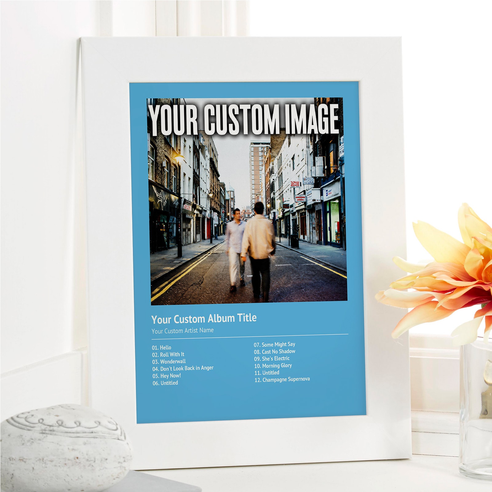 Our custom album cover prints are produced using high-quality materials to ensure a premium finish that lasts. Every detail, from your uploaded image to the personalised text, is printed with precision and clarity, resulting in a professional, gallery-quality piece of wall art. This attention to detail ensures your personalised print stands out as a truly special and lasting gift.
